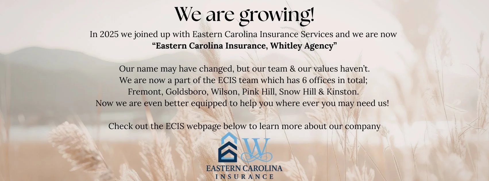 We’re an independent, locally owned and operated insurance agency. We not only deliver customized, cost-effective policies and plans but also create a family-like atmosphere. Opened in 1957 by Mr. Dick Whitley and then by his son, Dean Whitley. Our team stays up to speed on industry trends and have served families & businesses in our communities throughout Eastern North Carolina for almost 60 years.